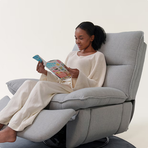 Se transforma sin esfuerzo de la elegancia de una silla decorativa a la versatilidad de un modelo giratorio y la comodidad de una mecedora.Un solo sillón reclinable sustituye a tres sillas, combinando un diseño que ahorra espacio con el máximo confort. Ajusta fácilmente las posiciones y los ángulos, mientras las funciones de giro y balanceo lo hacen perfecto para relajarse o recibir visitas.