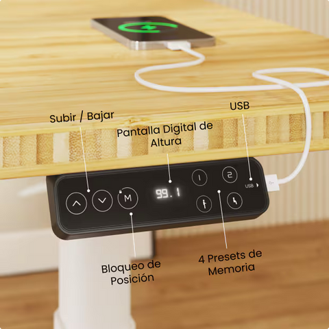 Guarda hasta 4 alturas personalizadas y cambia fácilmente entre sentarse y estar de pie con solo un toque—ideal para crear rutinas saludables y fluidas.
